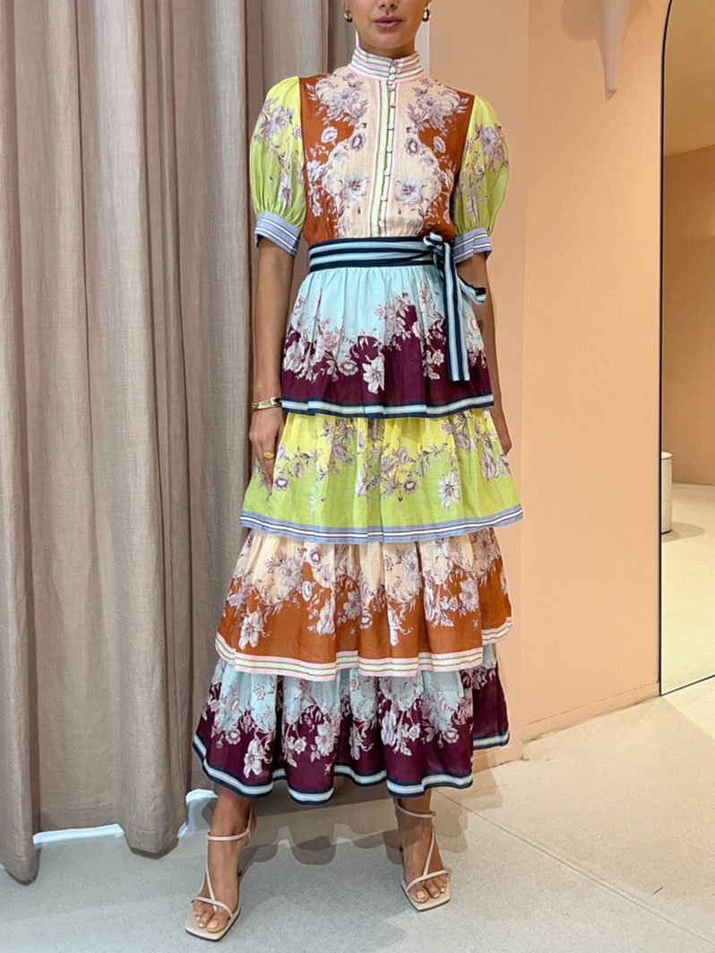 Retro paisley print ruffled midi dress, designed with a flowing silhouette and delicate ruffle accents that highlight its vintage charm. Easy to wear and effortlessly stylish, perfect for weekend outings, vacations, or casual gatherings with a touch of retro elegance.