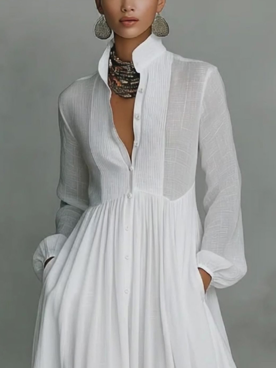Unique Retro Abstract Print Shirt Collar Maxi Dress
