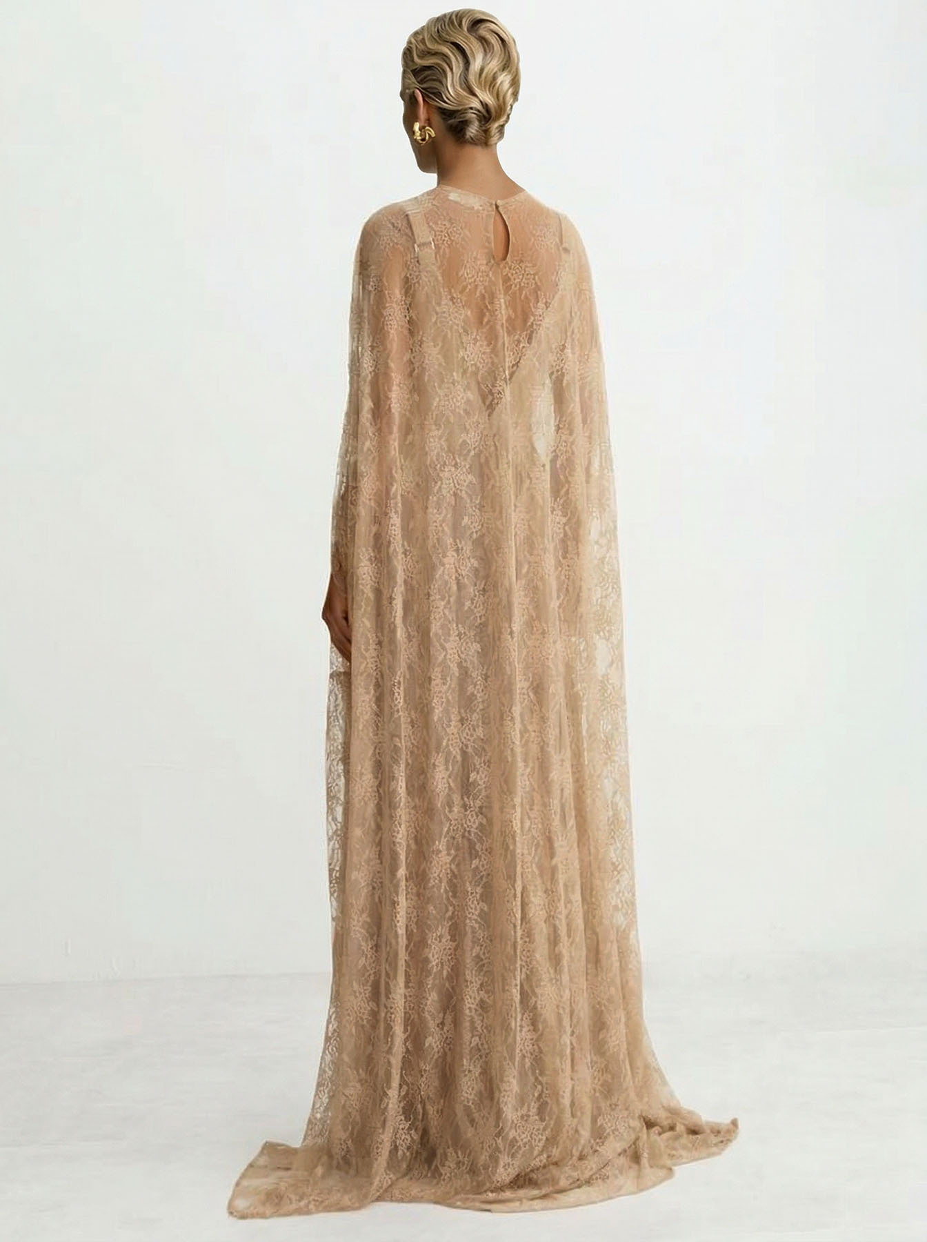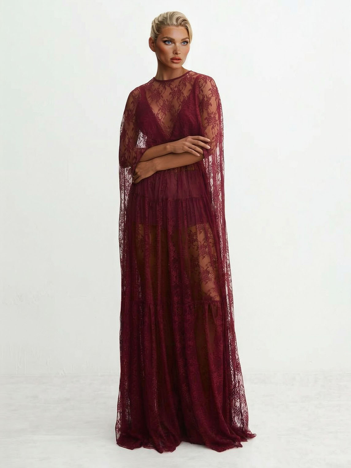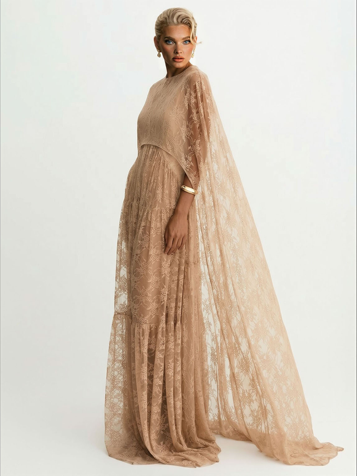Elegant Tulle Lace Shawl Sleeve Maxi Dress